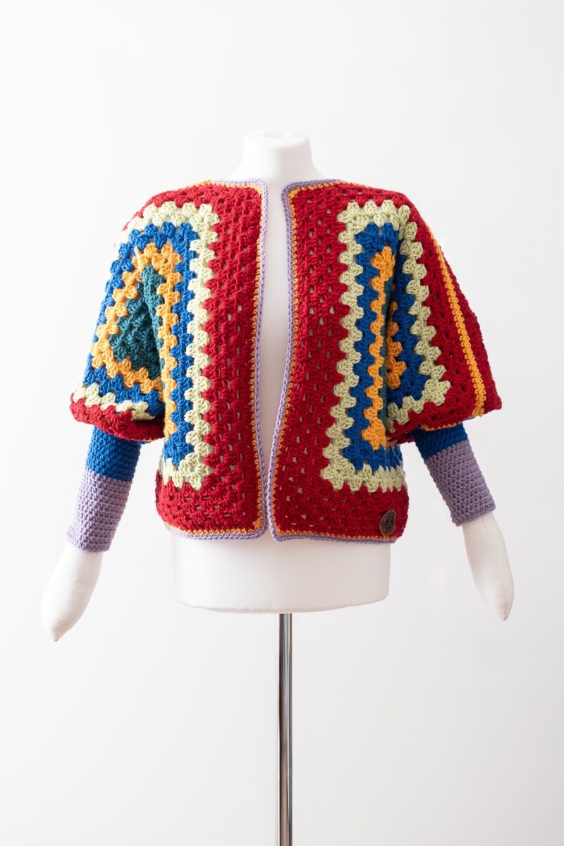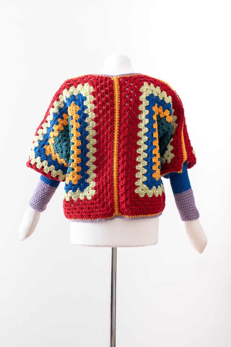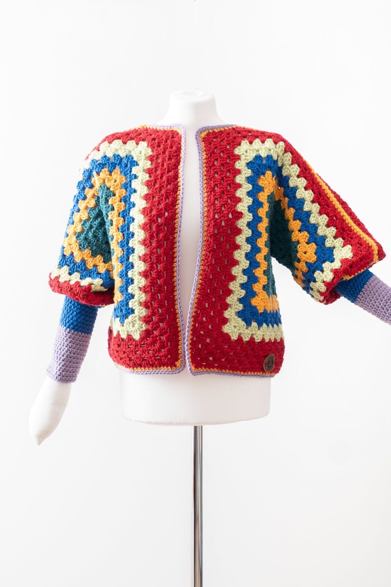 kardigan – wzór „granny square”, ciemne kolory