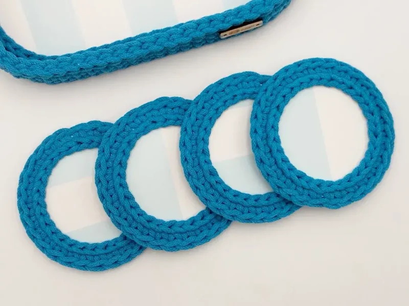 Tacka i podkładki ze sznurka w kolorze niebieskim
